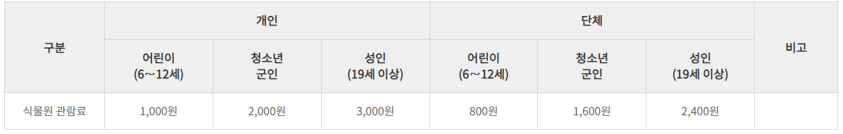 식물원 관람 및 이용료