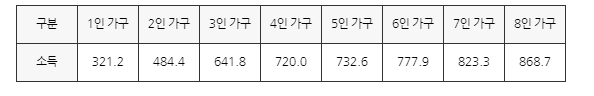 2022년도 가구강 도시근로자 월평균 소득 100% 이하이 가구