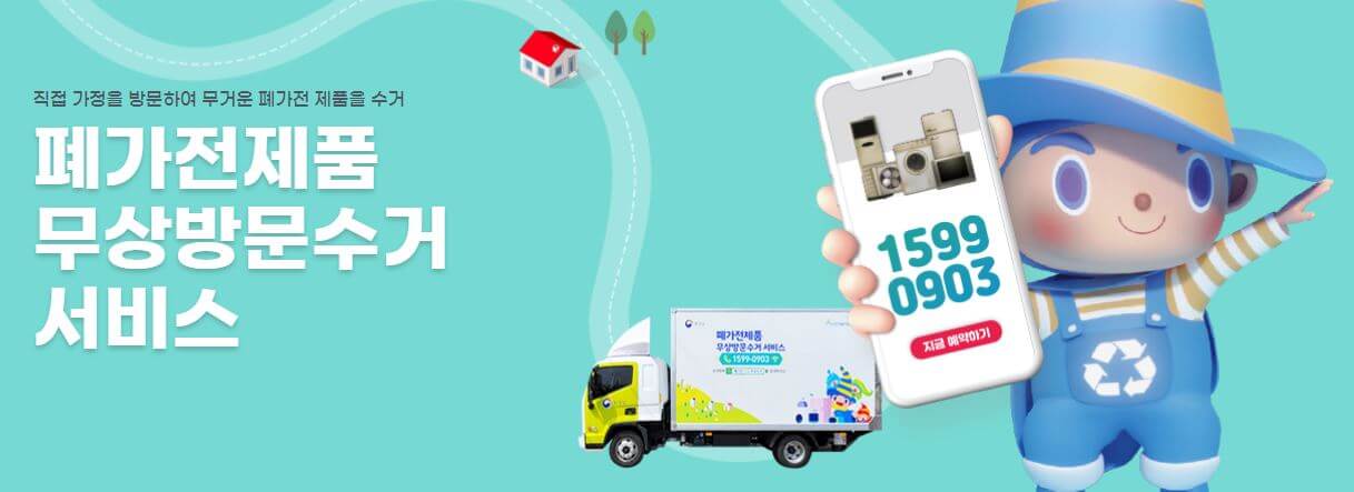 별도 가입 없이, 수수료를 낼 필요도 없이 지정된 장소까지 운반하지 않더라도 수거 기사가 직접 가정을 방문하여 무거운 폐가전제품을 수거해가는 서비스입니다.