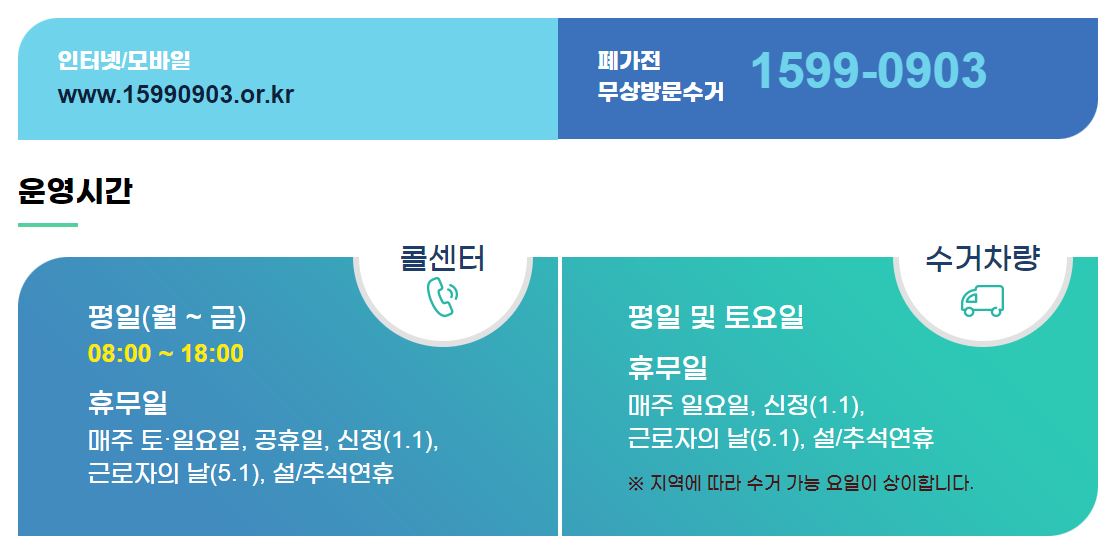 이상으로 폐가전 무료 수거 방문 수거 방법 및 주의 사항에 대해 알아보았습니다.
