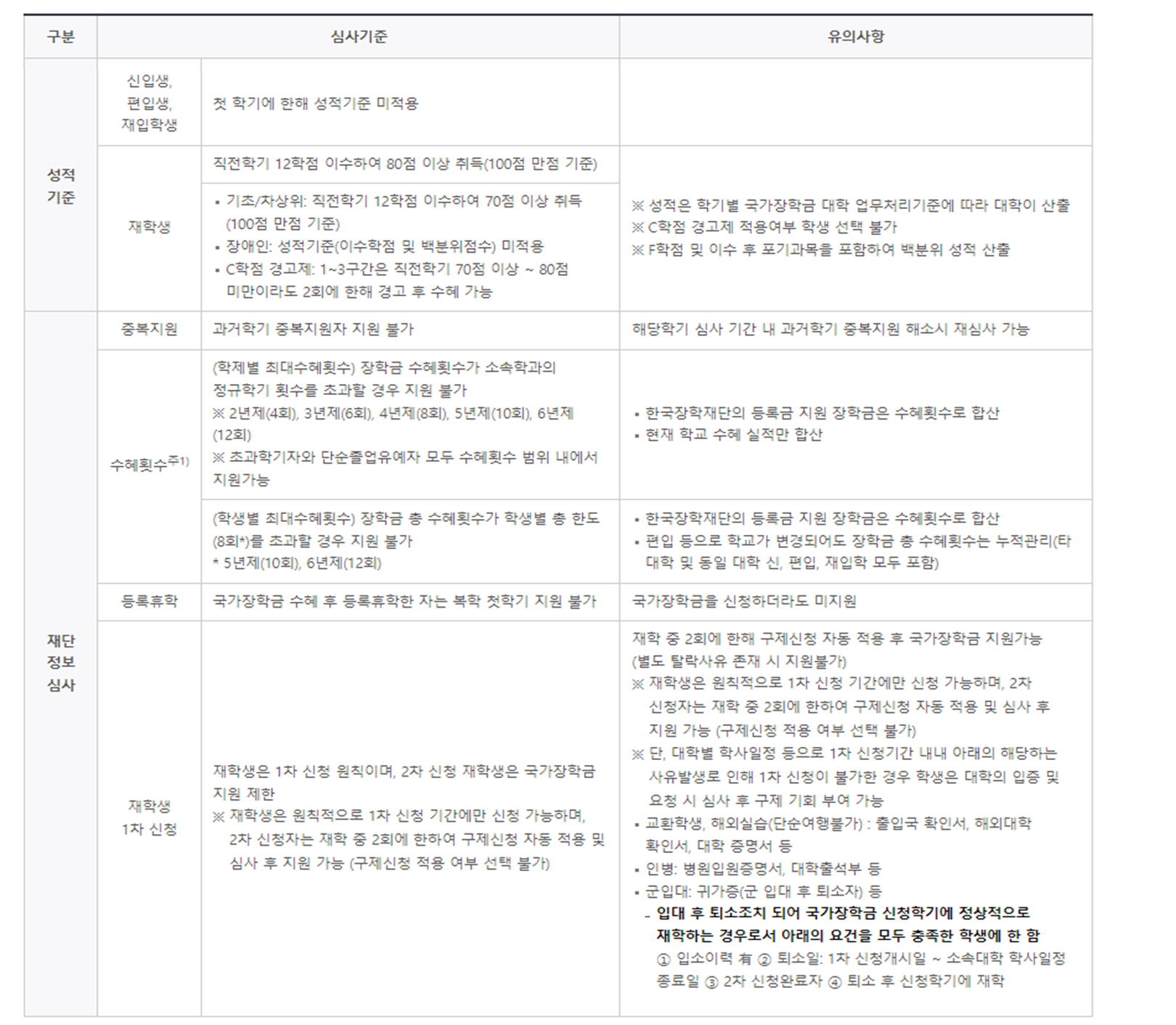 주 1) 수혜 횟수 심사 시, 학제별 최대 수혜 횟수 심사와 학생별 최대수혜횟수심사 둘 다 통과해야 지원 가능