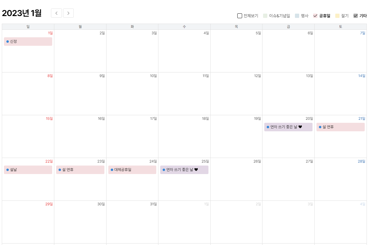 1월22일이 설 연휴입니다. 1월21일부터 23일까지 설 연휴 이고, 24일 대체공유일로 지정되어 있습니다.