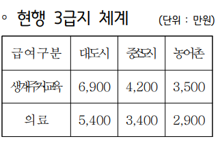 | ∘ 의료급여 선정기준 - 1인 가구: 777,925원 - 4인 가구: 2,048,432원 |