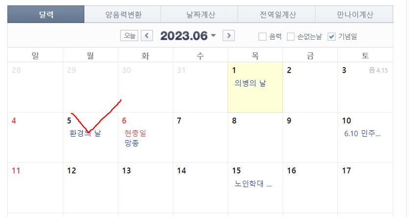 6월에는 현충일이 있습니다. 현충일은 화요일이기 때문에 6월 5일(월요일)에 연차를 쓴다면 4일 휴가를 누릴 수 있습니다.